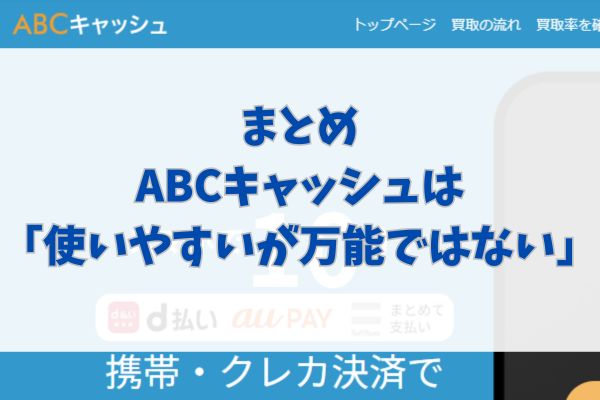 - ABCキャッシュは手軽だが、換金率が安定しないことがある